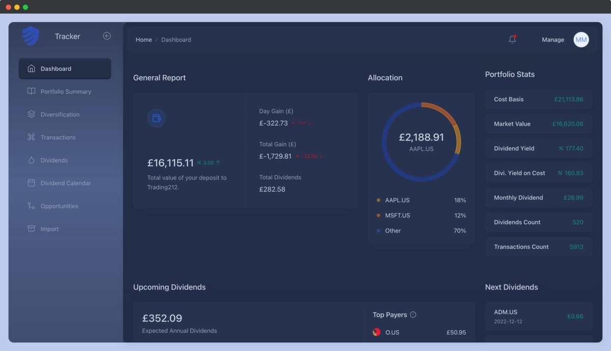 All you need to do is to export your file from Trading212 and import to the application. The rest will be handled by the application and give you great visibility.